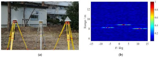 (a) Three trihedral CRs used as targets. (b) SAR image of the CRs obtained by the designed MIMO radar system.