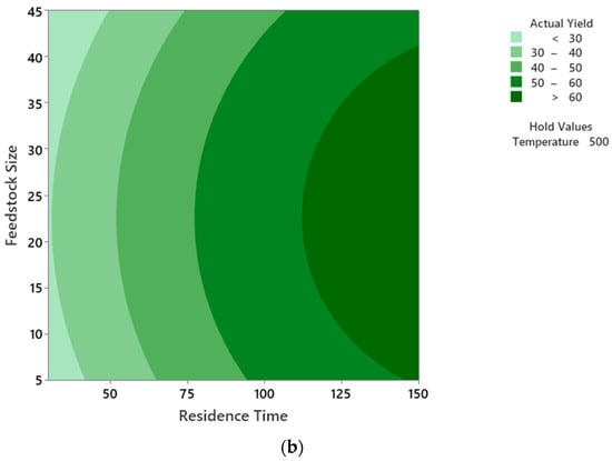| Run | Temp. (°C) | Residence Time (min) | Feedstock Size (mm) | Liquid Oil Yield (%) | |