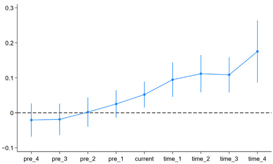 Initially, the effectiveness of the multi-time point DID was examined through parallel trend testing. Subsequently, robustness tests were conducted using placebo tests, the difference-in-difference-in-difference strategy (DDD), and the PSM-DID, among other methods. Additional robustness tests, including lagged regressions, winsorization, and replacing dependent variables, were performed to examine the regression results’ robustness further.