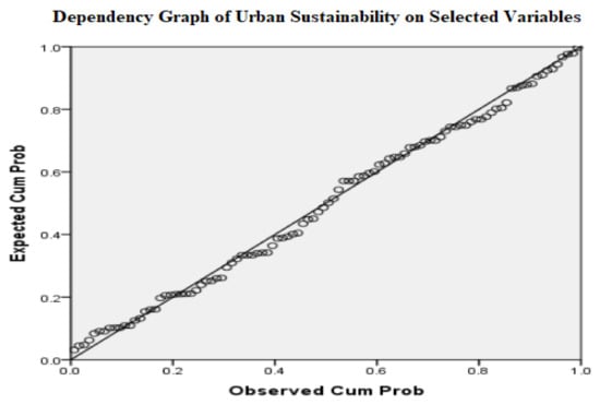 Ground truthing is a suitable way to understand the social issues of any area. Different researchers use multiple dependent and independent indicators in social sciences to examine urban sustainability in urban areas around the world [44,45]. Therefore, these indicators vary from area to area and from region to region based on their geographical requirements and needs. After the evaluation of the current results, it was found that the environment is a major concern for sustainability in the area. This may include the physical environment, economic conditions of an area, or social values. However, regression analyses are the best for examining the relationship between dependent and independent variables.