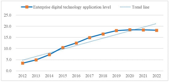 The trend of digital technology application in enterprises from 2012 to 2022.
