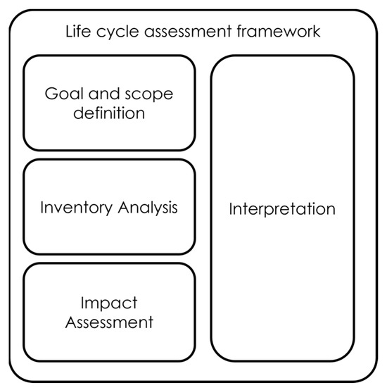 To evaluate the environmental impacts of a product, a service, or a process, the ISO standards of the 14040–14044:2006 series are available, which regulate the international Life Cycle Assessment (LCA) methodology [2,17,18,19,20]. This methodology allows the evaluation of energy and environmental loads along the entire life cycle. When speaking of “life cycle” analysis, we are referring to two aspects: the first is the verification of how much an entire system affects the environment, and the second lies in the analysis of the individual items of the cycle to improve the relative impact and identify critical issues in which to intervene.