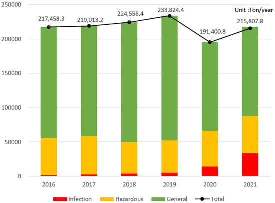 | Waste Type | 2019 | 2020 | (Rate of Increase Compared to the Previous Year, %) | 2021 | (Rate of Increase COMPARED to the Previous Year, %) |