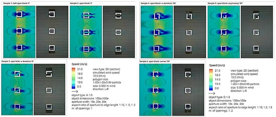 Table A5, it can be seen that the different house adaptations reflect different degrees of airflow within the created alleyways. A noteworthy feature of GEN_8 that set it apart from other proposed typologies like GEN_5 or GEN_7 was its seamless integration of comfort and urban community notions. The townhouse adaptations for GEN_8 aligned closely with the pattern of wind movement, suggesting a strategic and controlled approach could enhance the humid climate’s tolerability, especially in the case of separate dwelling houses. Likewise, GEN_8 exemplified one of the adaptations that remarkably maintained a tranquil urban environment among the proposed typologies, sustaining the highest wind intervals around the building clusters. Consequently, this behavior provides a flexible template that can be tailored according to the structure’s needs or alternative functions, all while ensuring a high level of comfort in urban spaces between different typologies. Furthermore, the comparison of typologies emphasized how GEN_8, with its wind-engulfed mass, showcased the promising potential for sustainable integration and elevated user comfort.