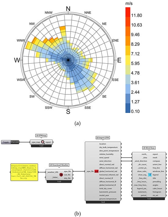 Figure 7b, the script interconnected Ladybug components with EnergyPlus meteorological data, enabling a detailed analysis of wind roses and offering important insights into the city’s distinct climate.