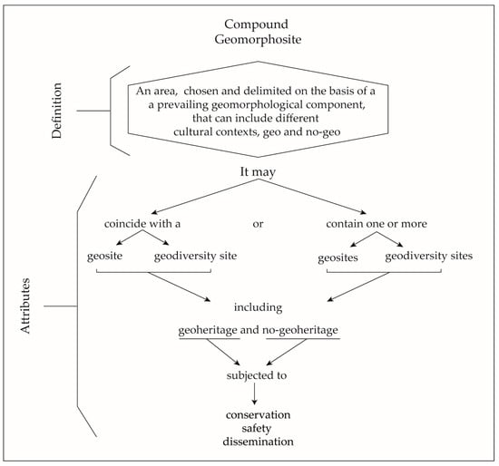Definition and attributes of Compound Geomorphosites. Note that the term geosite is used broadly, encompassing both geosites and geomorphosites.