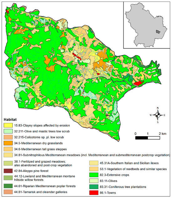 Map of the habitats related to the Craco municipality area. Data from [79].
