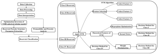 This chapter discusses the machine learning techniques and reservoir classification methods employed in the article. Three machine learning methods were utilized in the study: the Random Forest algorithm, Support Vector Machine algorithm, and Extreme Gradient Boosting algorithm. The article employed reservoir quality factors and optimized inversion methods by the spherical-tubular Model of NMR Logging for reservoir classification. The schematic of the workflow used in this work is shown in Figure 1.