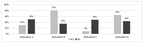 Furthermore, for collective self-consumption schemes, the current Portuguese legislation implies that all generated energy must be self-consumed in the generation site before being shared with other participants, based on a 15 min analysis [40]. We hypothesize that this can be a significant barrier for RECs, mainly when the PV systems are in buildings with high energy consumption levels. During the day, there may be extremely low amounts or even zero surplus energy to share with the members, resulting in decreased SCI and SSI indexes and more extended payback periods for the members.