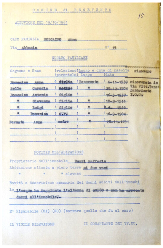 Damage survey cards compiled in the aftermath of the 1961 flood in Benevento to ascertain the damage to housings [35b] in Appendix A.