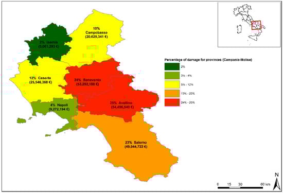 Damage in Campania and Molise related to both public and private buildings as well as infrastructures (see Table 4 for details).