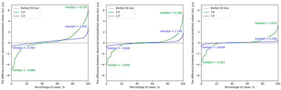 For the models with R2 value close to 1 and a low RMSE value, no high differences in ∆ε values between the predicted and actual values were recorded. Therefore, the selected models are not only effective in predicting values on average, but also demonstrate high performance in individual cases, which significantly increases the application possibilities.