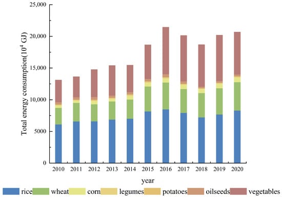 Total energy consumption of agricultural crops in Jiangsu province from 2010 to 2020.
