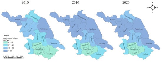 3.2. Jiangsu Province Agricultural Carbon Emission Temporal and Spatial Characteristics Analysis