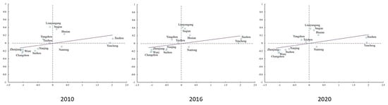Agriculture is a significant consumer of water resources, with Jiangsu’s total water supply reaching m3 in 2020, of which agricultural water usage accounted for m3, or 58.9%. Additionally, the province aims to promote agricultural modernization, focusing on the development of agricultural science, technology, and equipment. As a result, the level of agricultural mechanization is increasing. However, this has led to further increases in agricultural inputs. In 2020, fertilizer application in Jiangsu Province reached 2.875 million tons, accounting for 5.35% of the national total [52]. The corresponding rise in energy consumption also contributes to an increase in agricultural carbon emissions to an extent.