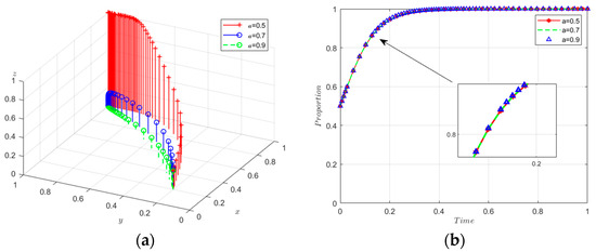 Sensitivity analysis of a. (a) Sensitivity analysis of 3D evolutionary maps. (b) The evolutionary path of x. (c) The evolutionary path of y. (d) The evolutionary path of z.