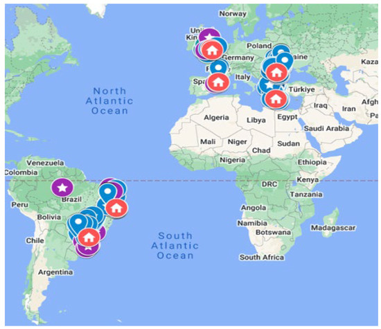 Figure 1 displays the locations of the students who participated in the project, used open-schooling resources, completed real-life issue activities related to the SDGs, and provided data about their experience for this study [30].