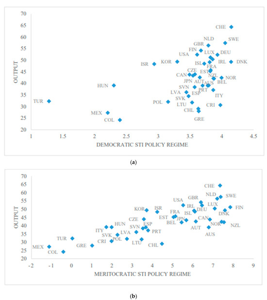 Nations with a higher degree of democratic STI policy regime perform better in innovation outputs than nations with a lower degree of democratic STI policy regime.