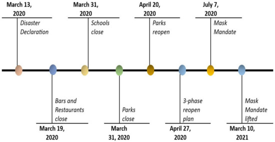 - McElroy, L. Texas State Parks Prepare to Return to Normal Capacity After Abbott’s Reopening Order. NBC 5 Dallas-Fort Worth, 10 March 2021. Available online: https://www.nbcdfw.com/news/local/texas-news/texas-state-parks-prepare-to-return-to-normal-capacity-after-abbotts-reopening-order/2575888/ (accessed on 7 February 2024).