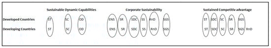 | 21 | Technology, sustainable development, and corporate growth—striking a balance | World Review of Science, Technology and Sustainable Development | Durge and Sangle (2020) [20] | India | This study established the importance of performance management for sustainability capabilities (DCs) and devised a sustainability balanced score card for operationalising sustainability strategies. Using technology as a source of innovation, companies can achieve competitive advantage by implementing four sustainability strategies, which are also DCs: (1) pollution prevention, (2) product stewardship, (3) clean technology, and (4) the base of the pyramid. Emerging countries are the key area for innovation and co-creation of new products, services, and businesses. Developed countries are not the right market, as developing markets provide opportunities for reverse innovation. | (1) Only a conceptual study, with no empirical data. (2) The role of performance management in developing DCs was not studied. (3) No comparison made between developing and developed countries. (4) Sector context was missing. |