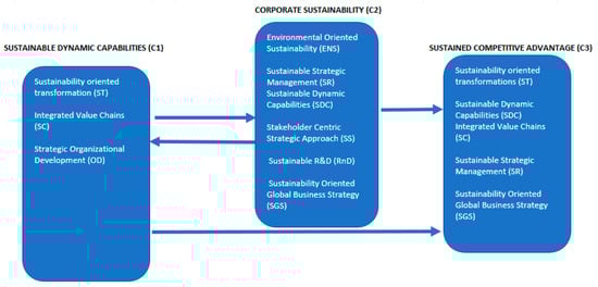 This research helps to extend dynamic capability theory, which was based on the Resource-Based Theory (RBT) of competitive advantage. An innovative framework is developed to convert sustainability into dynamic capability to achieve a competitive advantage, which introduces the theoretical concept of “sustainable dynamic capabilities” (SDCs). The three main constructs discussed in this paper are as follows: