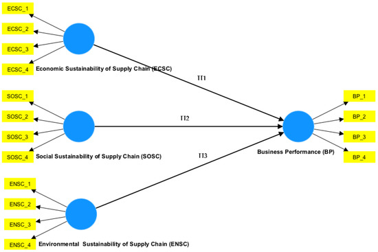 Environmental Sustainability of the Supply Chain (ENSC) has a positive effect on business performance (BP).
