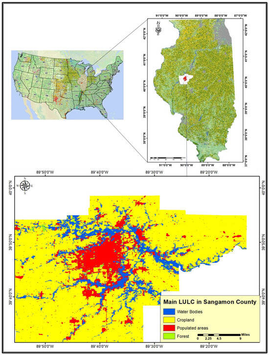 Figure 1. The location and main LULC units of Sangamon County, Illinois.