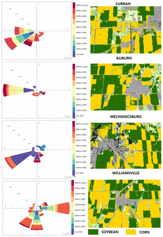 The main source of meteorological data used in this study was the National Weather Service (NWS) Director’s office, which is an NOAA Associate Director for Meteorological Resources database. The NWS collects weather-related data, including wind direction and speed, air temperature, relative humidity, and precipitation, on an hourly basis. All relevant climate variables can be accessed at https://www.weather.gov/wrh/Climate?wfo=bmx. Weather data for Sangamon County were collected for the entire research period (spring and summer of 2019), with the data last accessed on 4 January 2024. Hourly wind speed and direction data for the AgDRIFT model were obtained using this information.
