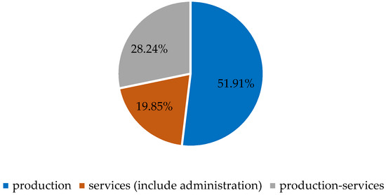 According to Figure 2, the majority of respondents were representatives of organizations dealing with production. The smallest number were purely service organizations—also administration. In each organization, at least one MSS was implemented.