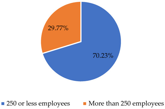 According to Figure 3, most of the surveyed organizations employ 250 or fewer employees (70.23% of the organizations). The rest of the organizations (29.77%) employ more than 250 employees.