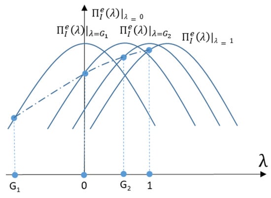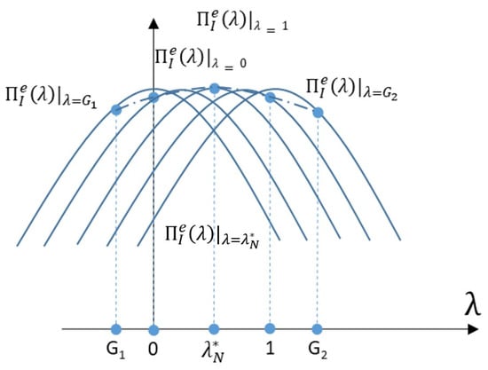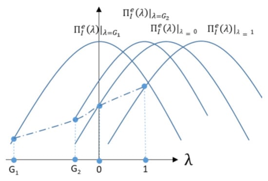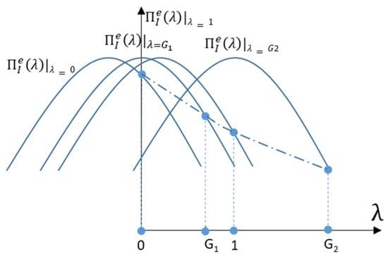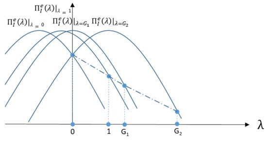 When the infrastructure supply chain claims different GPRs, the content service chain responds by declaring based on Equation (6) accordingly. Due to the coupling interaction of the two supply chains, the curve of the total profit of infrastructure supply chain will also move horizontally with claimed GPRs changing. Figure 2, Figure 3, Figure 4, Figure 5 and Figure 6 illustrate movements of curve with respect to varying under the interaction of the two supply chains. According to these figures, the optimal GPRs can be speculated, as Table 1 shows in the case of . Similarly, Table 2 can be worked out in the same way when . This graphical method can derive the solution in our relatively simple case, but it may encounter difficulties in some more complex cases.