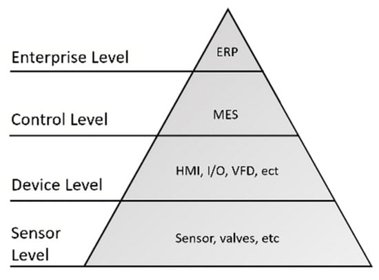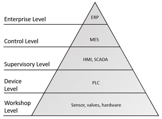 The automation pyramid in the Industry 4.0 paradigm for manufacturing enterprises.