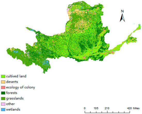 Spatial distribution of Yellow River Basin ecosystem types. Source: Data collated from the Institute of Resources and Geography, Chinese Academy of Sciences, 2020.