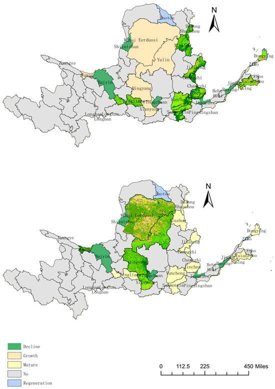 (1) The ecological types of resource-based cities in the Yellow River Basin are very different.