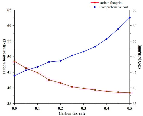 Impact of different tax rates on carbon emissions and integrated costs.