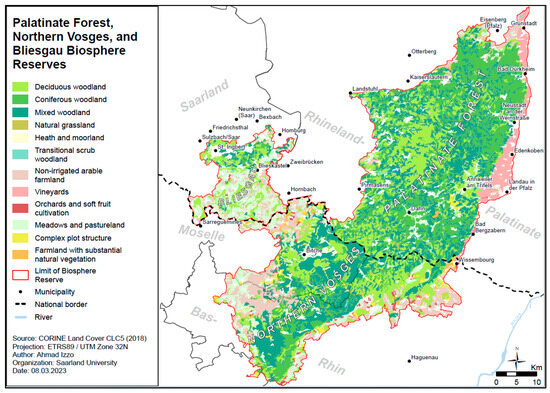 - Deutsche UNESCO-Kommission. UNESCO-Biosphärenreservat Palatinate Forest und Northern Vosges: Wälder, Weinbau und Deutsch-Französische Freundschaft. Available online: https://www.unesco.de/kultur-und-natur/biosphaerenreservate/biosphaerenreservate-deutschland/pfaelzerwald-und-NorthernVosges (accessed on 14 November 2023).
