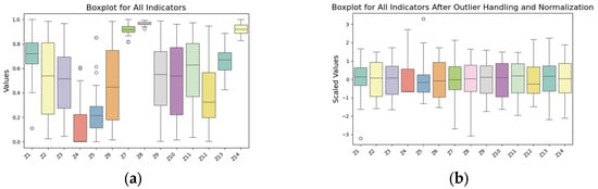 A comparison of the sample data box plots before and after data preprocessing, as depicted in Figure 1, illustrates that after data cleaning, the data distribution becomes more compact and reasonable. This enhancement demonstrates the effectiveness and comparability of our data preprocessing approach, which is essential for constructing the Bayesian network model.