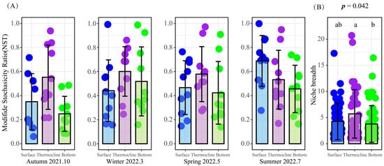 2.3.3. Dominant Species and Niche Breadth of Phytoplankton