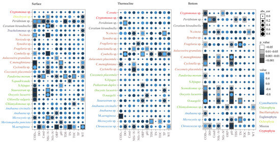4.2. Relationships between Phytoplankton Community Structures and Environmental Factors with Thermal Stratification Conditions