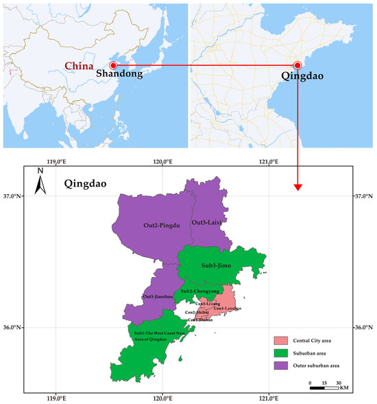 The location of Qingdao and its districts.