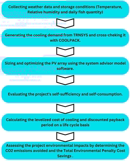 After a thorough review of the existing literature, it is evident that photovoltaic-generated power has great potential for use in cold storage facilities. For further details on various solar refrigeration processes, readers are referred to comprehensive review papers such as [34]. This study specifically focuses on studying a cold room in a local market in Fez, Morocco, for fish storage. The research questions addressed in this paper are as follows: