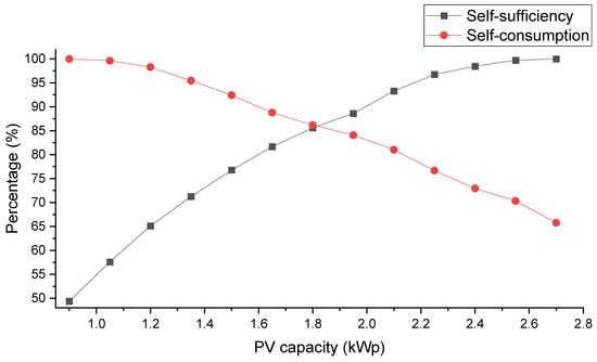 The self-sufficiency rate is the proportion of electricity drawn directly from the PV array compared to the energy needed by the cold room. It can be calculated as follows [43]: