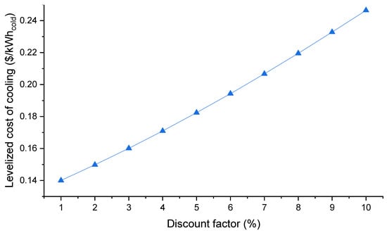 Levelized Cost of Cooling (LCOC) is a commonly used indicator in the literature for assessing the project costs of various technologies over their anticipated operating lifetimes [46]. It takes into consideration the capital recovery costs, capital costs for construction, operating costs, interest on loans, maintenance, discount rate and inflation. LCOC represents the cost per kilowatt hour of cooling (kWhCold) demanded by the project. It is calculated following this formula [47]: