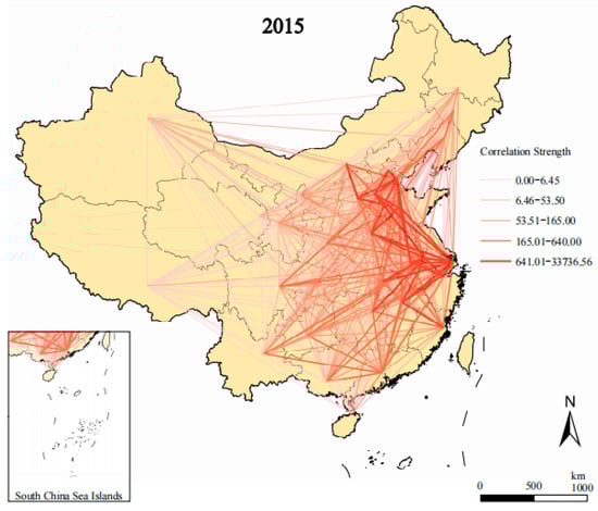 Spatial correlation network of transportation carbon emission intensity in China (2015).