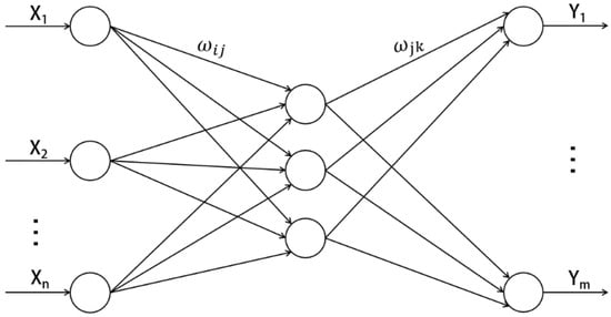 The backpropagation (BP) algorithm is a widely used neural network technique for tasks such as pattern recognition, function approximation, and forecasting [14]. It features good nonlinear mapping functions and high structural flexibility. The neural network can be trained according to the error backpropagation algorithm to adjust the weights, allowing the network to make accurate predictions based on the input data. The basic structure of a single hidden layer neural network is shown in Figure 1.