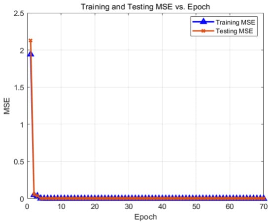 It is very important to select a suitable parameter configuration for BP algorithm training and model performance. After debugging the model and referring to the literature, the maximum epoch is set to 1000. The minimum error of the training target is set to 0.000001. The learning rate is set to 0.1. In addition, in order to solve the problem that the error caused by the gradient descent method is not sensitive to weight, momentum factor is introduced to optimize BP, and the value is set to 0.9. Because the number of hidden layer nodes determines the complexity and expressiveness of the neural network model, too many hidden layer nodes may lead to overfitting of the model, and too few hidden layer nodes may lead to underfitting of the model. The selection of the appropriate number of nodes in the hidden layer needs to consider the complexity of data and the fitting ability of the model. Here, the empirical equation hiddennum = sqrt (m + n) + a is adopted [19], where m is the number of nodes in the input layer, n is the number of nodes in the output layer, and a is generally an integer between 1 and 10, which is selected through the 50% cross-validation method. The optimal number of hidden layer nodes is nine. Under this parameter setting, the training error and test error are shown in Figure 2.