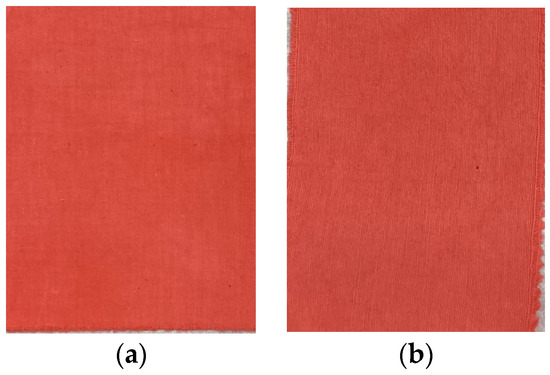 Dyed samples of the (a) cotton–cork blend and the (b) 100% cotton muslin with reactive dye.