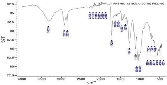 FTIR spectra of the weft yarn of the 90:10 cotton–cork blended fabric.