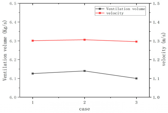 It could be seen that the results match better in spring and fall, but the error was large in summer. This can be attributed to measurement errors caused by strong convective weather during the summer months in hot-summer and cold-winter regions, as well as the lack of stability of the airflow inside the chimney due to localized heating of the Trombe wall. These further affected the indoor wind environment. In order to improve the accuracy of the data during the summer months, extreme wind speed values were filtered out and removed using a computer. On the other hand, measurements were avoided as much as possible during strong convective weather. In order to prevent errors caused by overheating of the chimney, several measurements were taken during midday and late afternoon. The average of these measurements was recorded, and the data were analyzed by computer to remove the unreasonable data values caused by overheating. The real-world environment has a number of uncontrollable factors that can interfere with the forward wind speed, including obstructions, monsoons, and extreme weather conditions. However, the simulated wind speed was the steady input wind speed inside the inlet. Although the outdoor environment was set to be restored in the outflow field, there was some error in the simulation results with the measured values. However, the overall trend remained consistent, and the error rate was controlled within 5%. Therefore, the experimental and simulation parameters could respond to the ventilation effect of the Trombe wall after it was applied to the building.