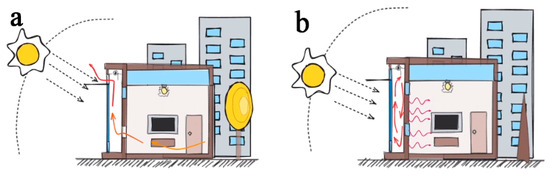 (a) Summer mode with cross ventilation; (b) winter mode with air thermocirculation.